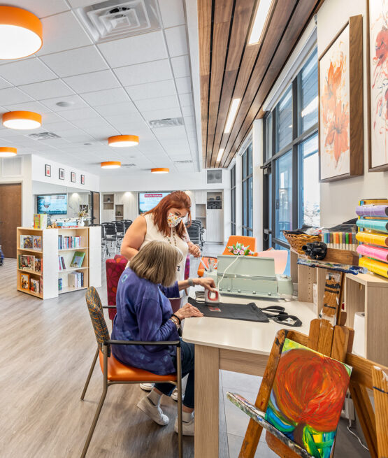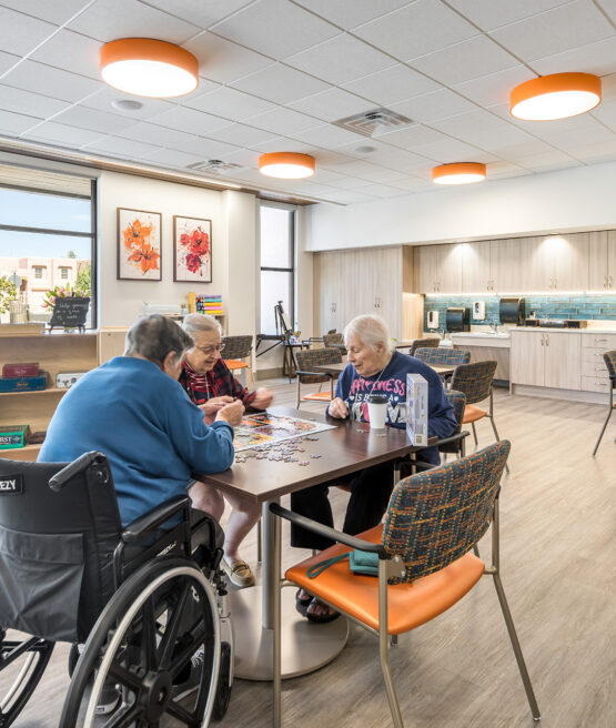 Consistency brings comfort. Our caregivers use gentle cueing, calm communication, and step-by-step support to help residents with daily tasks like bathing, dressing, and mealtimes. We build routines around personal preferences such as music, favorite foods, and times of day when a person feels most at ease. The neighborhood layout supports safety and orientation, with clear sightlines and welcoming common areas that reduce confusion. Activities are adapted to each person’s abilities. Simple art, music, movement, and sensory experiences encourage connection without pressure. We watch for subtle changes in health or behavior and coordinate with families and outside providers as needed. The goal is to reduce anxiety, maintain comfort, and preserve dignity at every stage.